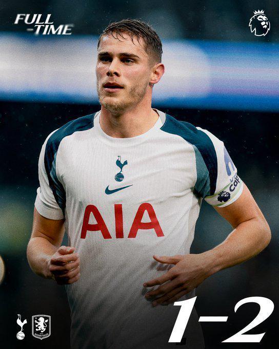 雷速体育10月20日讯 本轮英超,热刺1-2阿斯顿维拉。
